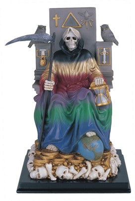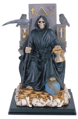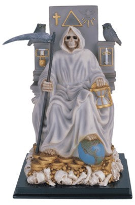 10 3/4in. Santa Muerte . Religious Figurine, Holy Death sitting in her throne. Santa Muerte Sentada en su trono.